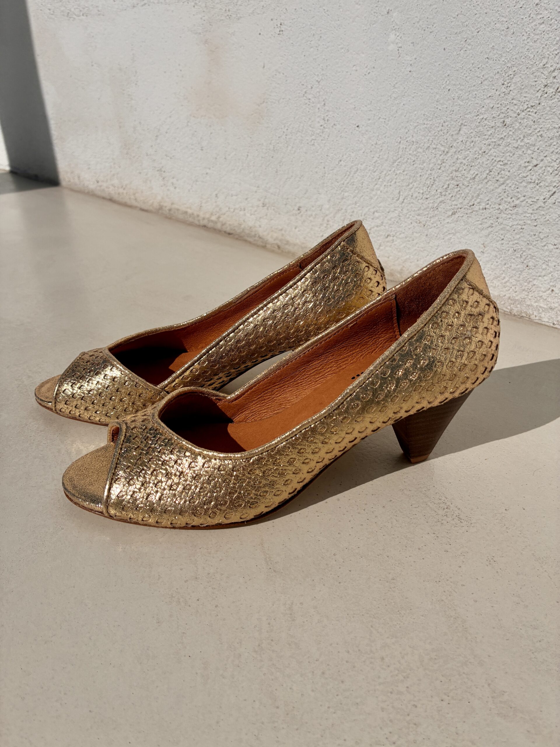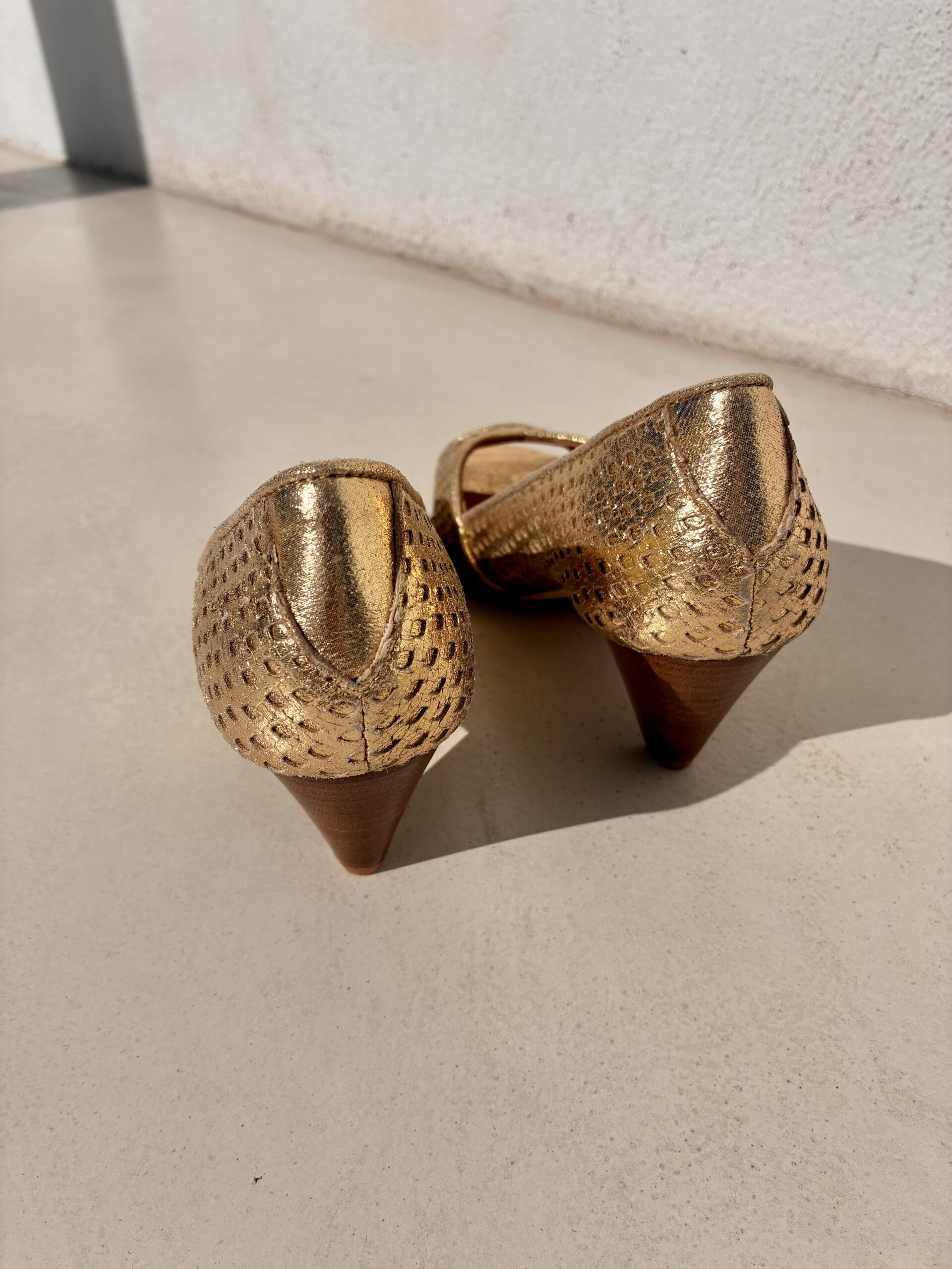 En tant qu’inconditionnelle du petit talon trotteur de 5 cm je ne pouvais passer à coté d’une sandale à talon avec un petit bout ouvert. A porter en journée, en demi-saison, en saison, en soirée, avec ou sans chaussette, en réalité un indispensable dans un garde-soulier d’une femme de goût de ce nom! Elles cont confortables, intemporelles, so chic et so rock, un vrai condensé de tout que l’on aime chez Kmassalia!
