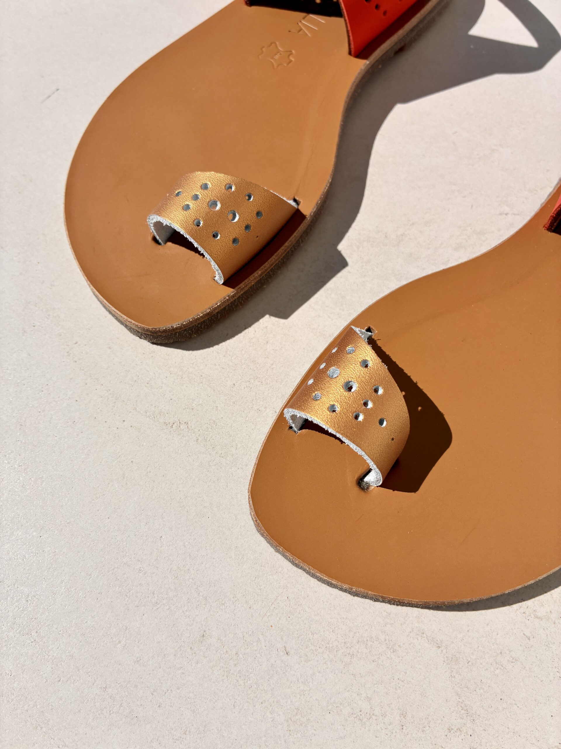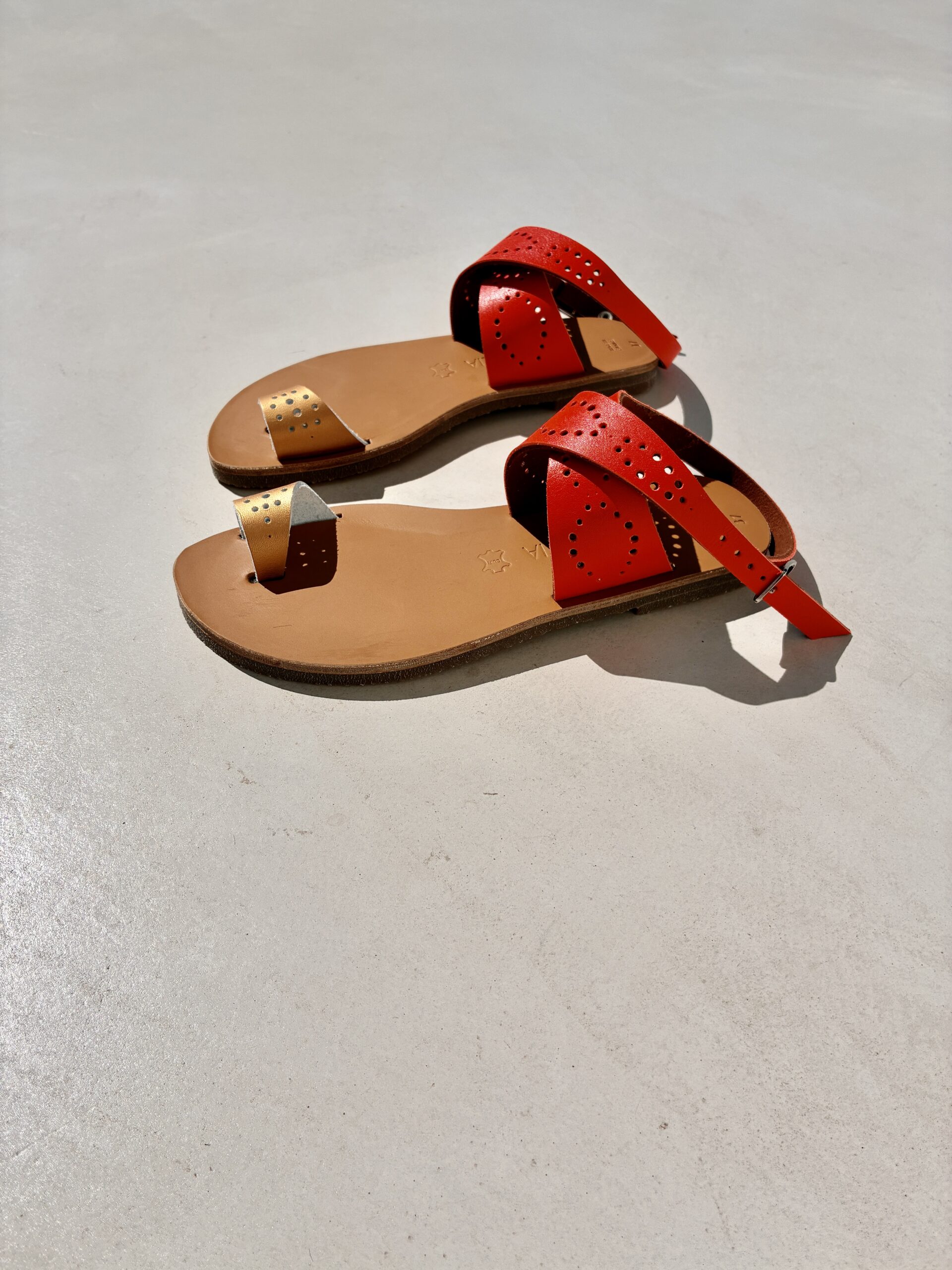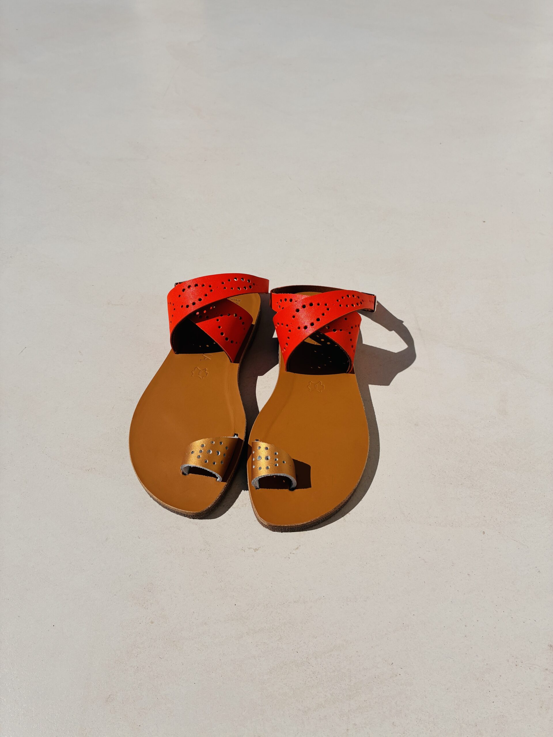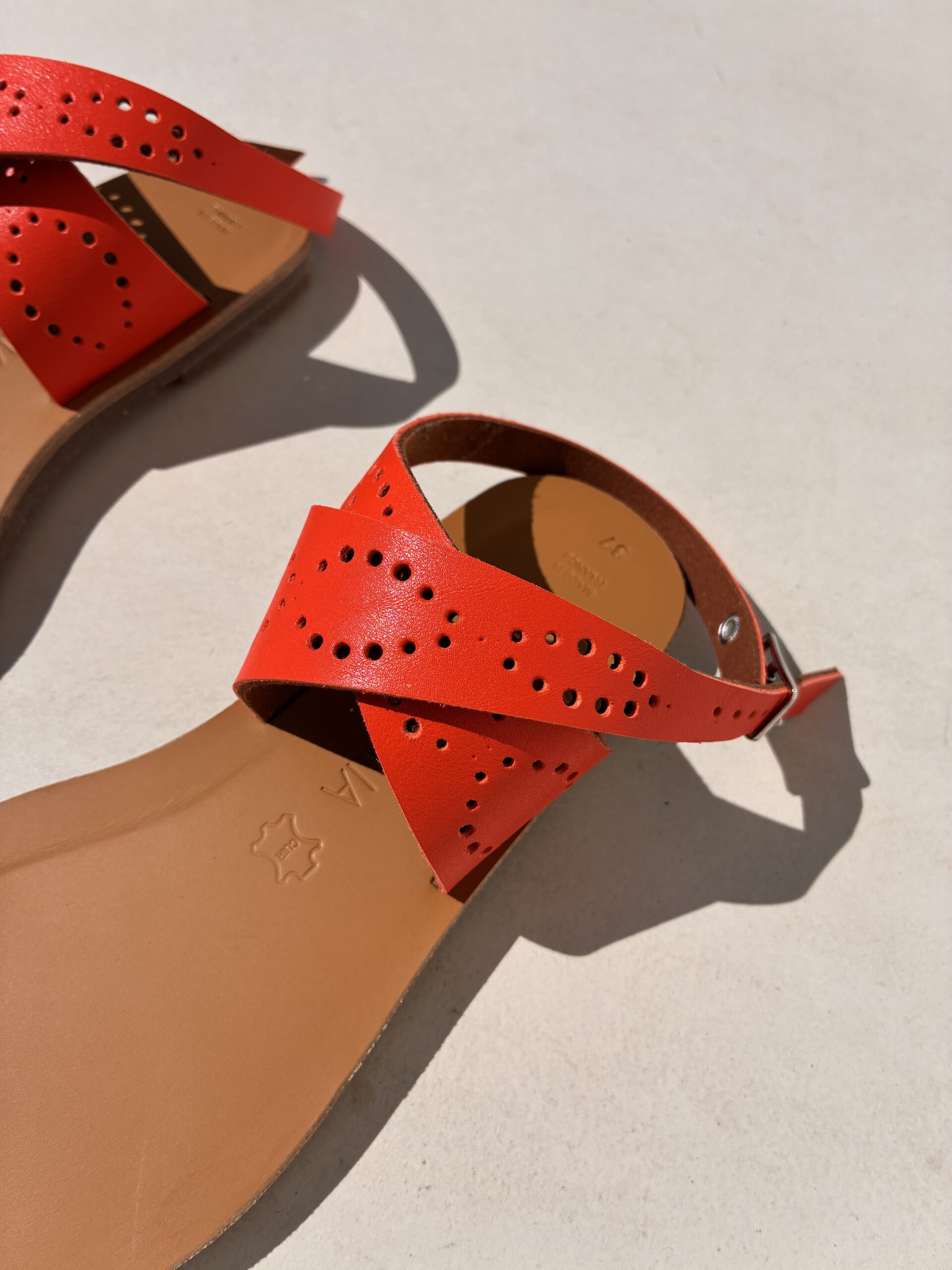 Chaque sandale est réalisée à la main dans nos ateliers en France, dans le respect des techniques traditionnelles de fabrication. Du choix des cuirs à la découpe, jusqu’à l’assemblage final, chaque étape est soigneusement maîtrisée pour garantir une finition irréprochable.