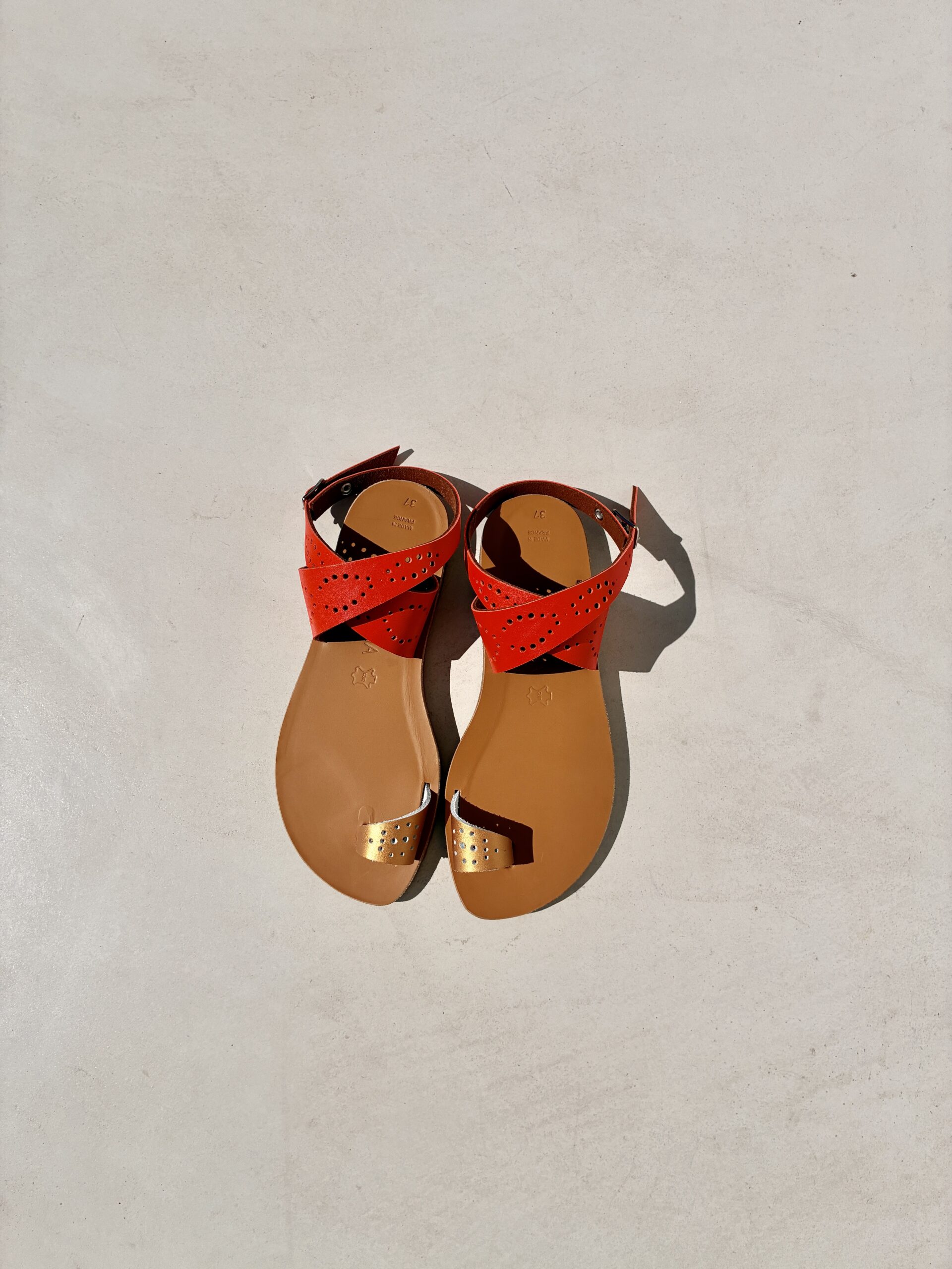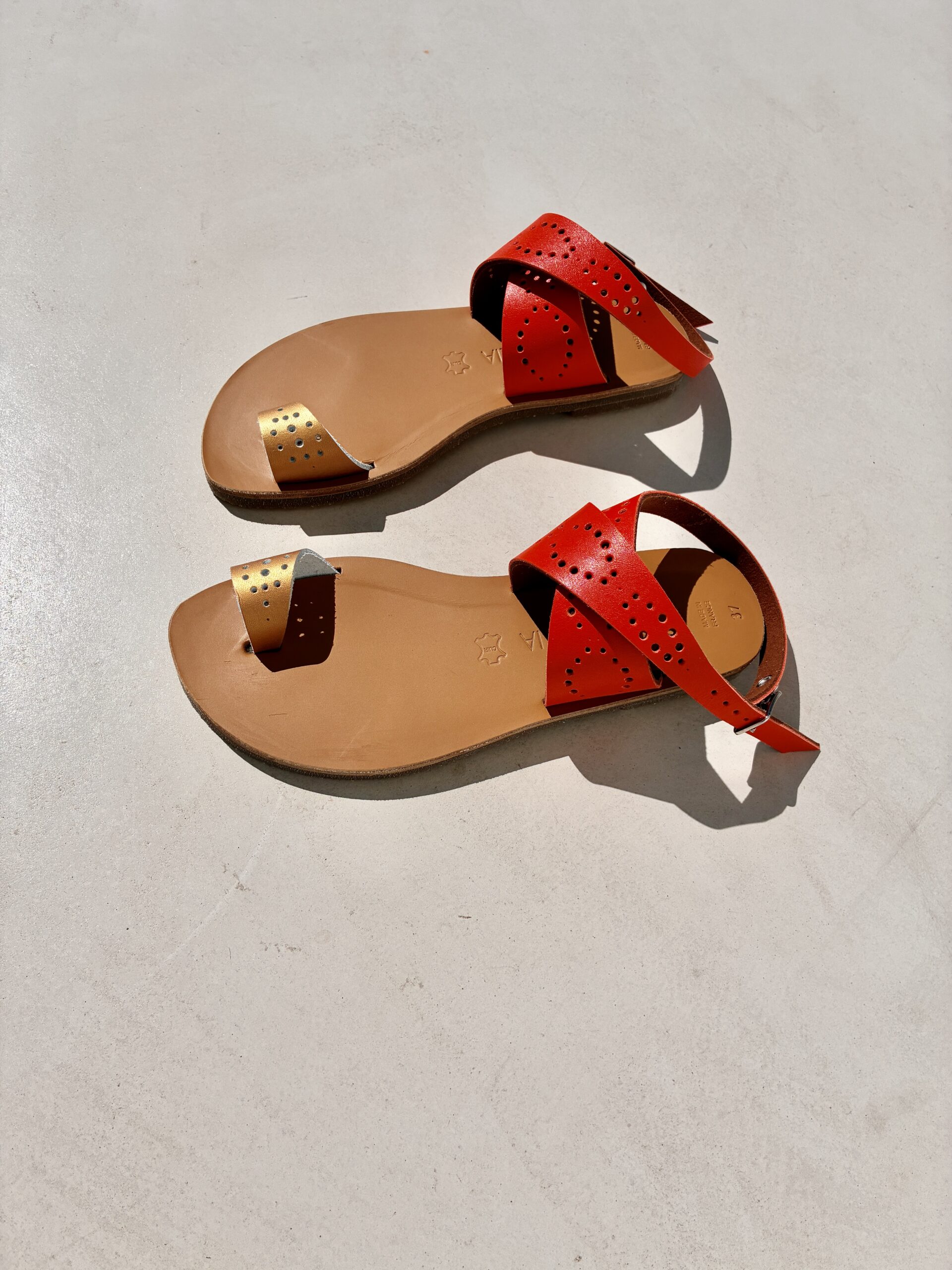 Les sandales Massalia sont entièrement dessinées et réalisées à la main en France avec des cuirs français de qualité.